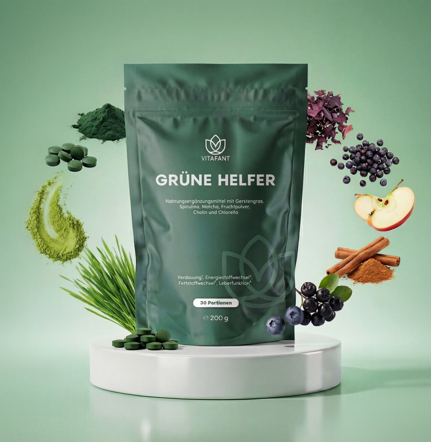 Grüne Helfer kombiniert hochwertige Pflanzenstoffe, präzise abgestimmte Mineralien² und natürliche Ballaststoffe zu einem ganzheitlichen Ansatz für Energie² und allgemeines Wohlbefinden. Die einzigartige Formel unterstützt deinen Körper dort, wo er täglich entlastet werden möchte – sanft, effektiv und ideal für deinen modernen Alltag.