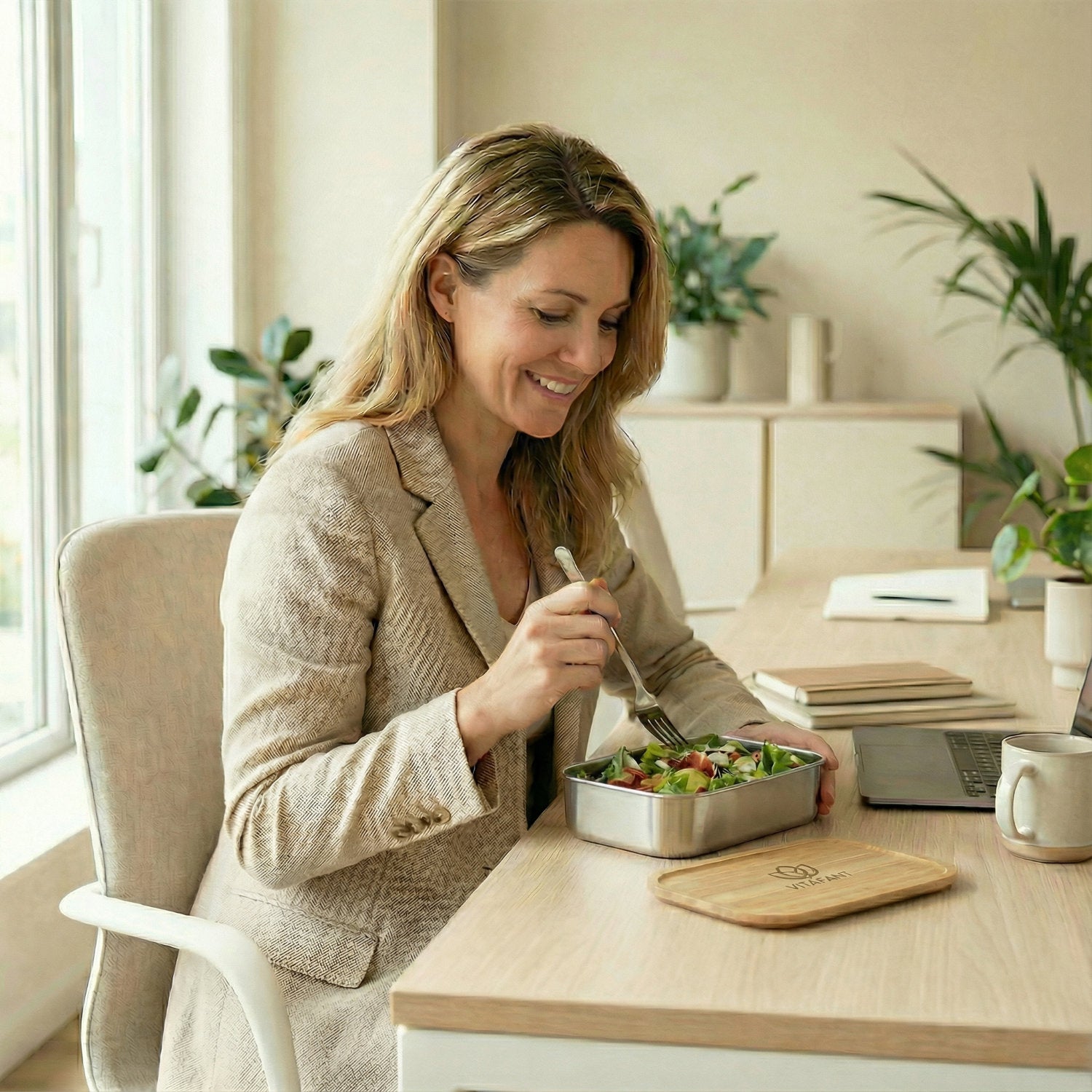 • Edelstahl-Lunchbox mit nachhaltigem Bambusdeckel