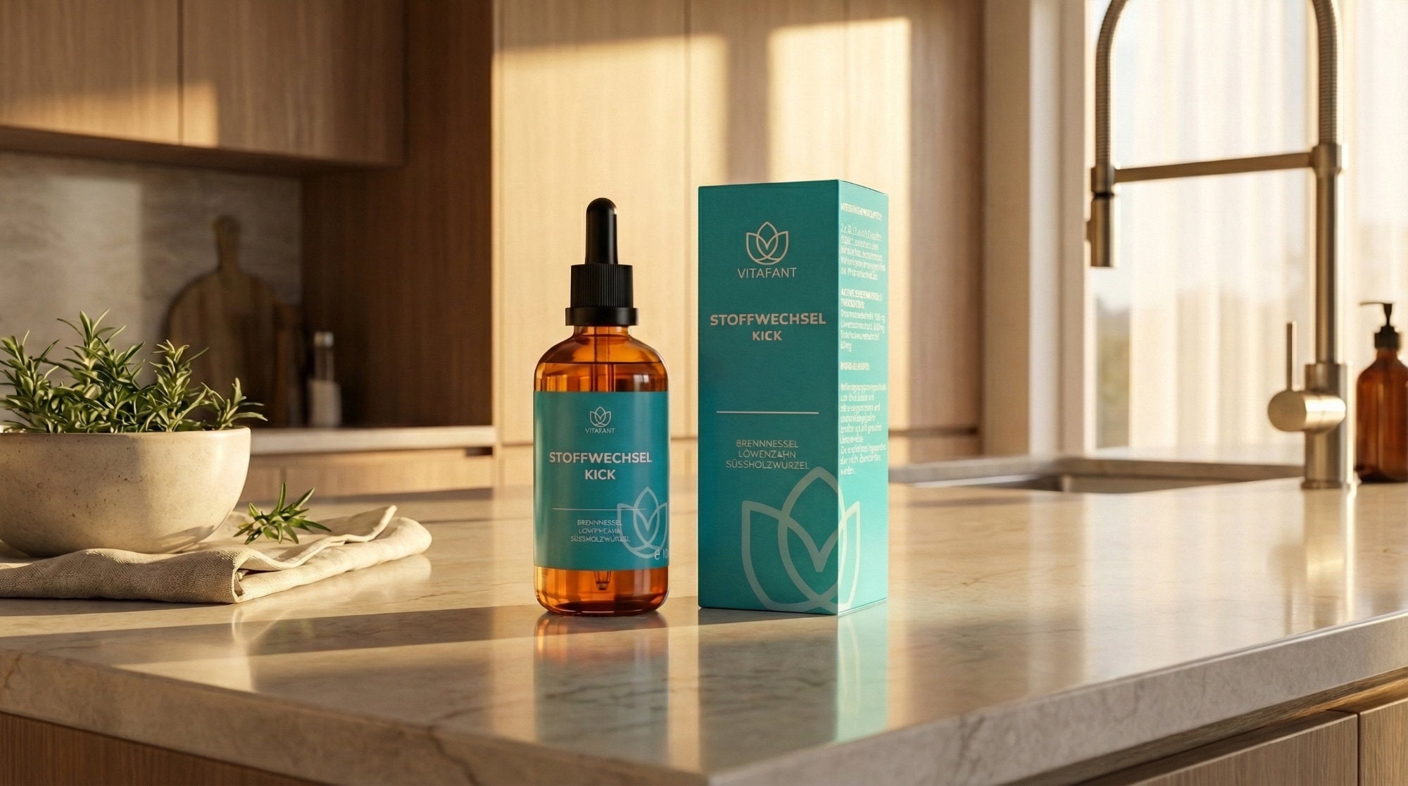 Der Stoffwechsel Kick kombiniert die natürlichen Kräfte von Brennnessel, Löwenzahn und Süßholzwurzel in einer hochwertigen Kräutermischung. Diese spezielle Rezeptur kommt ohne Alkohol und Zucker aus, wobei das pflanzliche Glycerin einen milden, süßlichen Geschmack bietet – ganz ohne künstliche Zusätze.